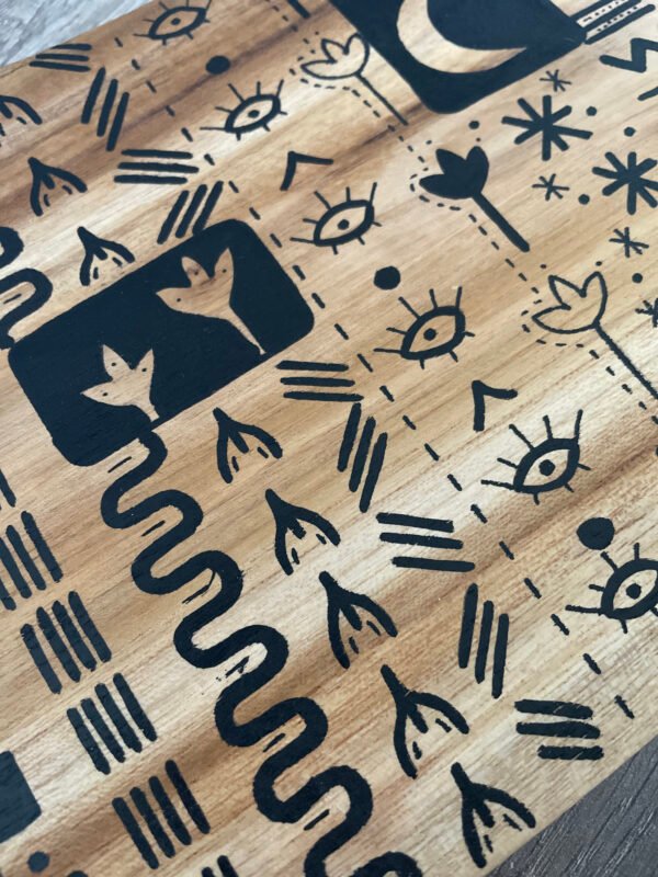 Peinture acrylique au pinceau et Posca, finition vernis.